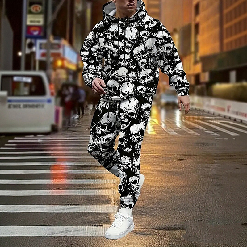 Men's Skull 2pcs 3D Sweatshirt Sets Tracksuit Hoodie Sweatshirt Long Sleeve Long pants Hooded Casual Daily Athleisure 3D Print Spring Fall Winter Black