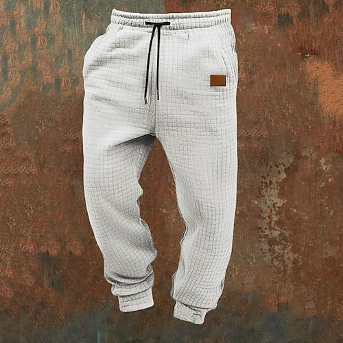 Herren Jogginghose Hose Waffelhose Kordelzug Tasche Elastischer Bund Einfach Komfort Sport im Freien Täglich Mode Lässig Schwarz Weiß Mikroelastisch