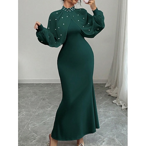Per donna Abito maxi Tubino Elegante Festa cocktail All'aperto Feste Ospite di nozze Vestibilità regolare Tinta unica Manica Lunga Collo alla coreana Nero Verde scuro Primavera Autunno Inverno