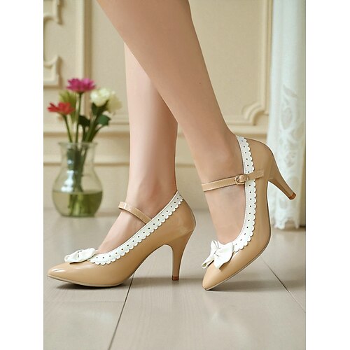 scarpe mary jane in vernice bianche e nere da donna – eleganti décolleté a punta anni '50 con bordo smerlato e fiocco per ufficio, feste e occasioni speciali