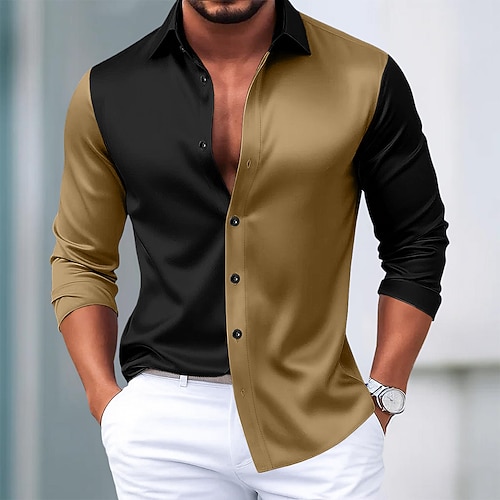 Per uomo Camicia Camicia in raso Camicia elegante Camicia casual Camicia con Bottoni Camicia da Ballo Blocco di colori Feste Casuale Nero Rosso Oro Manica Lunga Bavero Primavera Autunno Tutte le