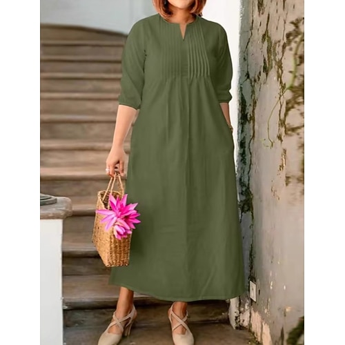 Per donna Abito Midi Vestito Estivo Abito a trapezio Casual Spiaggia Feste Vestibilità comoda Semplice Mezza Manica Girocollo Nero Marrone chiaro Verde Estate Primavera
