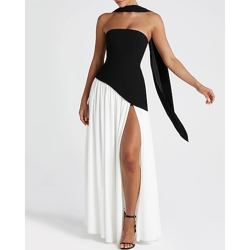 Per donna Abito Lungo Maxi Abito Abito da Ballo Vestito da Festa Abito da Cocktail Moda Moderno Festa serale Feste Cocktail party Vestibilità regolare Semplice Senza Maniche Senza Spalline Nero