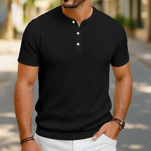 Per uomo Maglia Henley a nido d'ape Maglietta Manica Corta Tinta unica Semplice Moda Designer Casual Bottoni Blocco di colore Henley All'aperto Casuale Quotidiano Estate Tutte le stagioni Nero Bianco