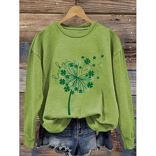 Felpe da donna di San Patrizio con grafica trifoglio casual a maniche lunghe girocollo top regolari casual street abbigliamento quotidiano stampa nero bianco verde primavera autunno inverno
