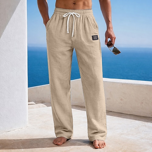 Per uomo Pantaloni di Lino Pantaloni Pantaloni da Spiaggia Coulisse Tasca Fascia Elastica Semplice Comodità Traspirante Quotidiano Elegante Hip-hop Cachi chiaro Nero Micro-elastico