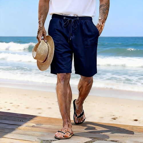 Per uomo Shorts Shorts di Lino Pantaloncini Estivi Shorts da Spiaggia Coulisse Elastico in vita Semplice Comodità Traspirante Lunghezza al ginocchio Casuale Quotidiano All'aperto Vacanza Moda Nero