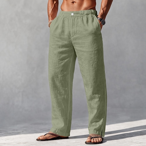 Per uomo Pantaloni di Lino Pantaloni Pantaloni Estivi Elastico in vita Gamba Dritta Vita alta Tinta unica Comodità Traspirante Lunghezza intera All'aperto Casa Casuale Vacanza Moda Grigio verde Nero