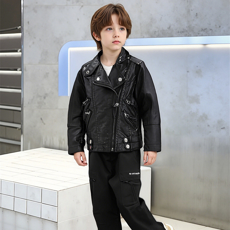 Kid's Boys' Black Leather Jacket Jacket Outerwear Plain Long Sleeve Zip Up Waterproof Windproof Coat Daily Fashion Casual Black Red Spring Fall 4-12 Years