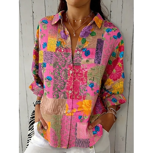 Per donna Camicia Camicia di lino Camicie di cotone e lino Semplice Quotidiano Elegante Essenziale Manica Corta Colletto a Camicia Top Regolari Lavoro Quotidiano Ferie Bottoni Rosa Blu Rosa Estate