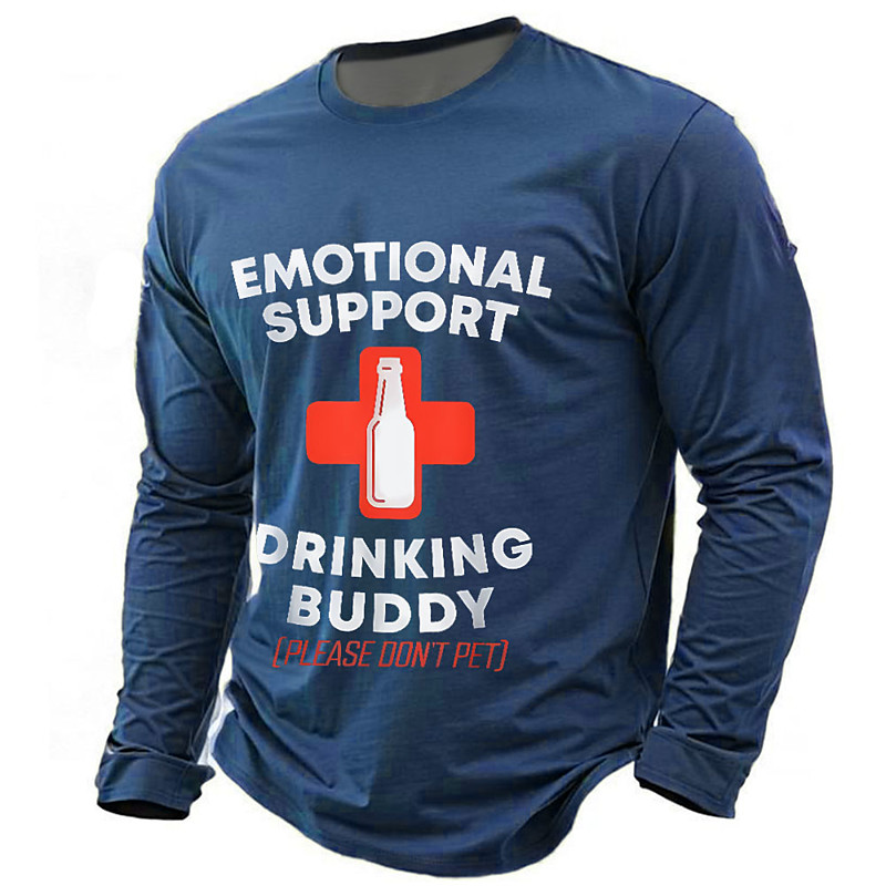 Emotional Support Drinking Buddy Please Don't Pet Long Sleeve T Shirt Funny Beer Drinking Humor Men Graphic Tee Olive Green Novelty Top Clothing Apparel S M L XL XXL XXXL