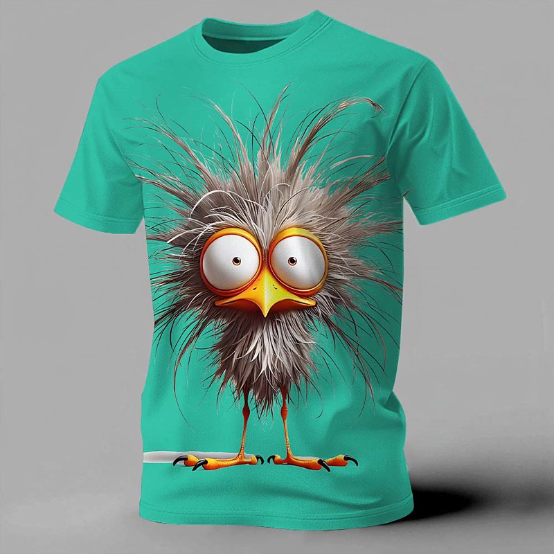 Funny Crazy Hair Bird 3D Graphic Print T Shirt Yellow Men Short Sleeve Crew Neck Casual Humorous Animal Tee Top Clothing Apparel S M L XL XXL XXXL
