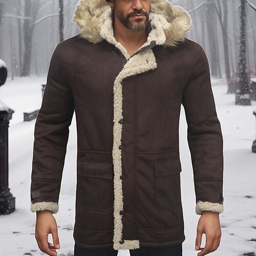 Per uomo Giacca Invernale Giacca Sherpa Vacanza Quotidiano Calore Termico Tasca Pile Inverno Semplice Moda Streetwear Con Cappuccio Regolare Nero Vino Cachi Caffè Giacca