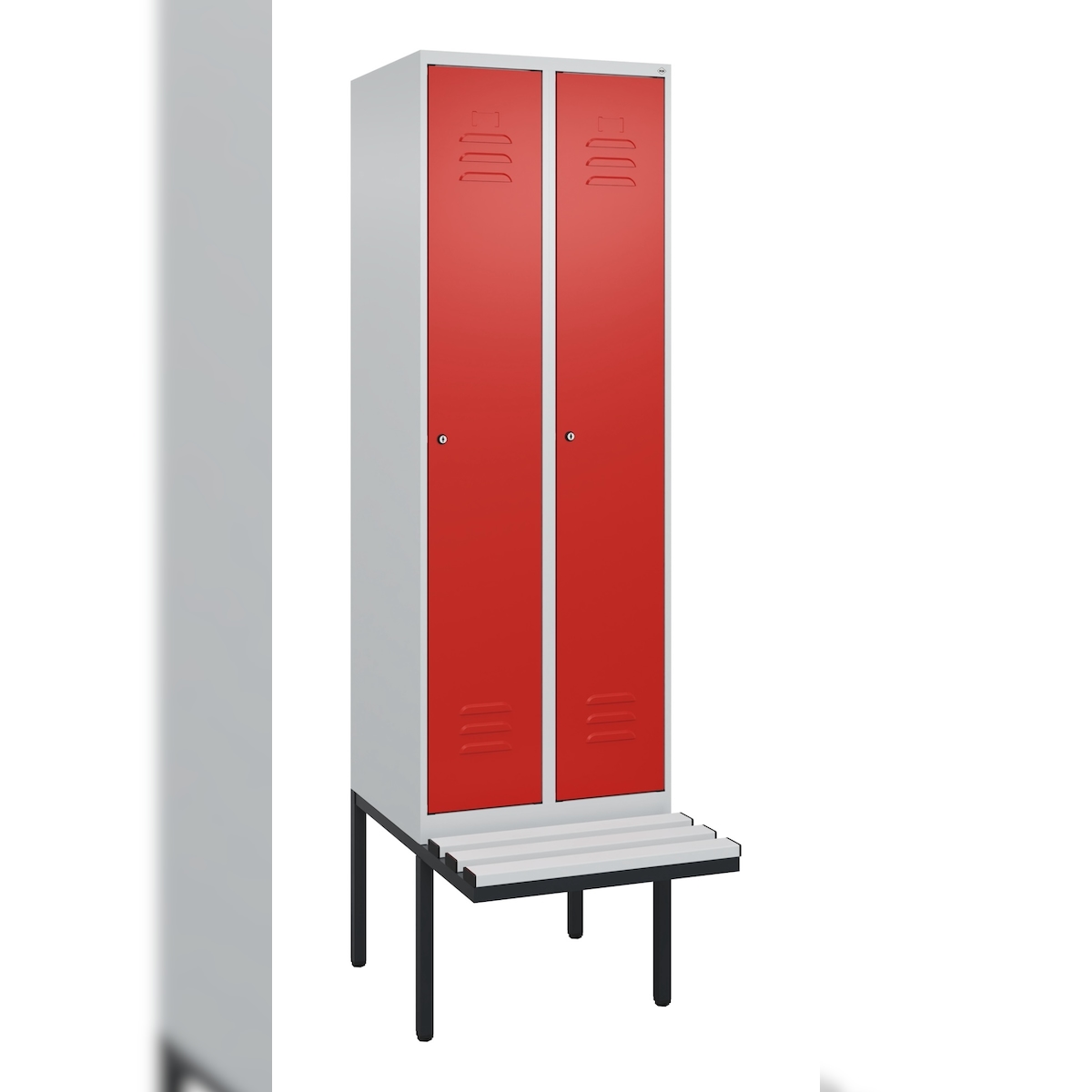 C+P Spind Classic PLUS, Kunststoff schwebende Sitzbank, 2 Abteile, HxBxT 212x60x82cm, Zylinderschloss, Hellgrau/Rot von PROREGAL