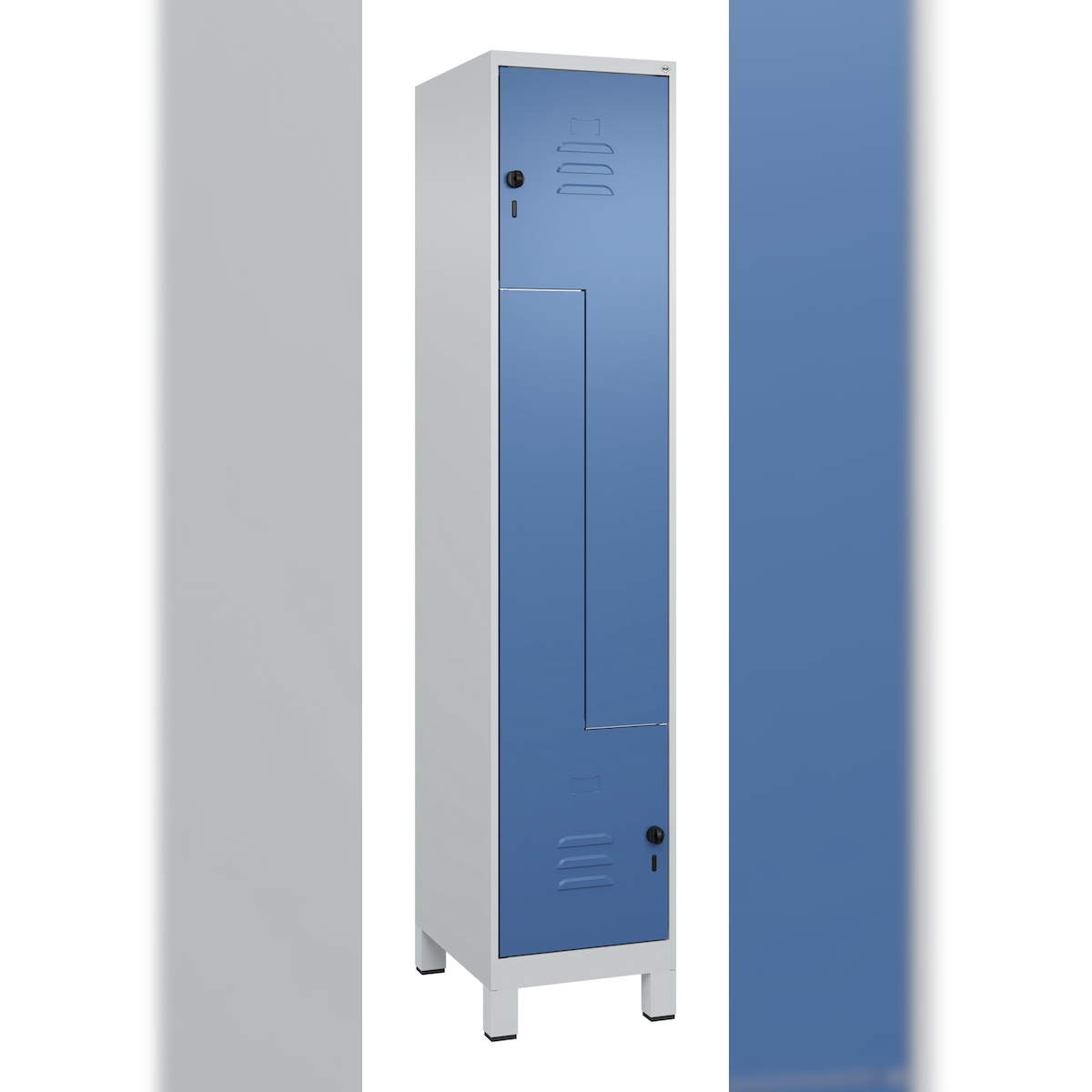 C+P Z-Spind Classic PLUS, Füßen, 2 Abteile, HxBxT 195x40x50cm, Sicherheitsdrehriegel, Hellgrau/Fernblau von PROREGAL