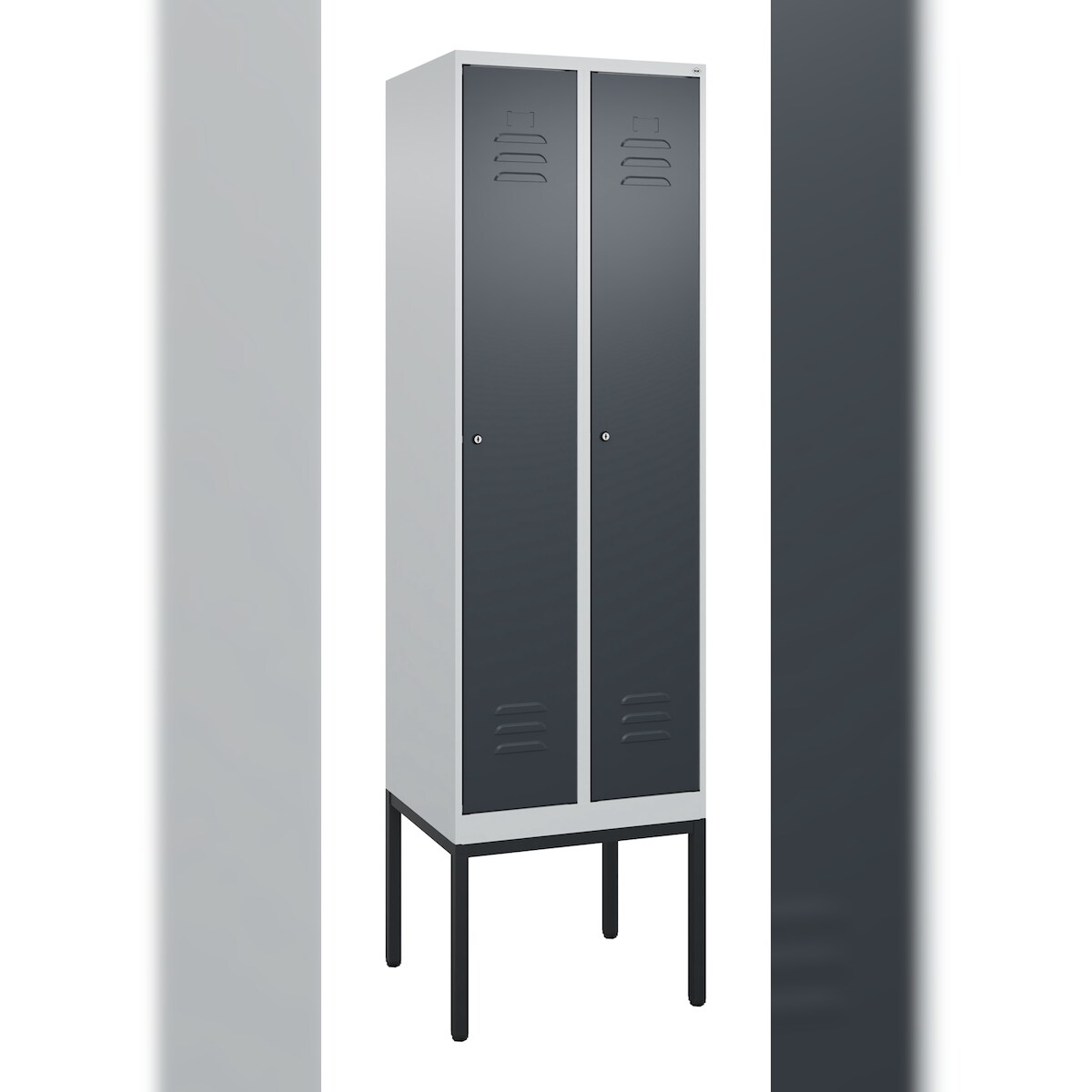 C+P Spind Classic PLUS, Gestell, 2 Abteile, HxBxT 212x60x50cm, Zylinderschloss, Hellgrau/Anthrazit von PROREGAL