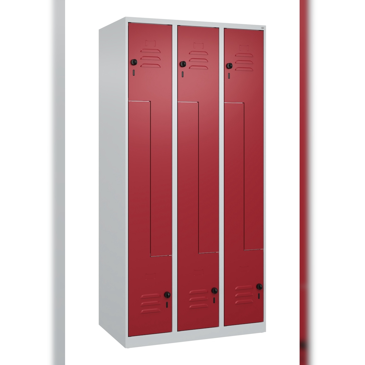 C+P Z-Spind Classic PLUS bodenstehend, 6 Abteile, HxBxT 185x90x50cm, Sicherheitsdrehriegel, Hellgrau/Rubinrot von PROREGAL