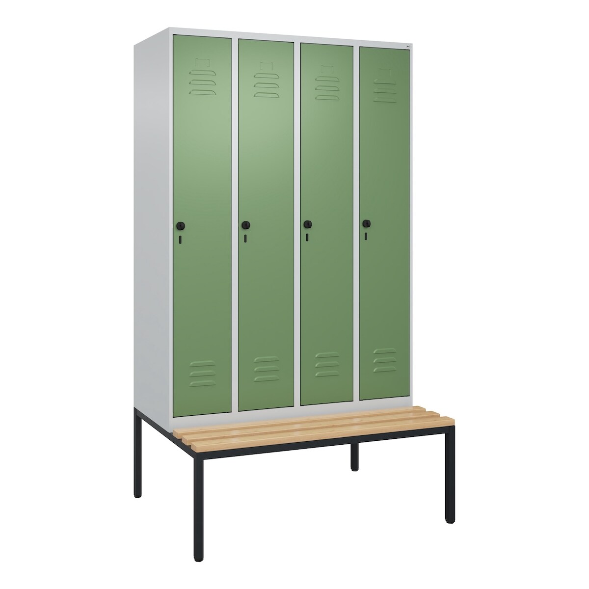 C+P Z-Spind Classic PLUS, Buche untergebaute Sitzbank 4 Abteile, HxBxT 212x80x82cm, Zylinderschloss, Hellgrau/Resedagrün von PROREGAL