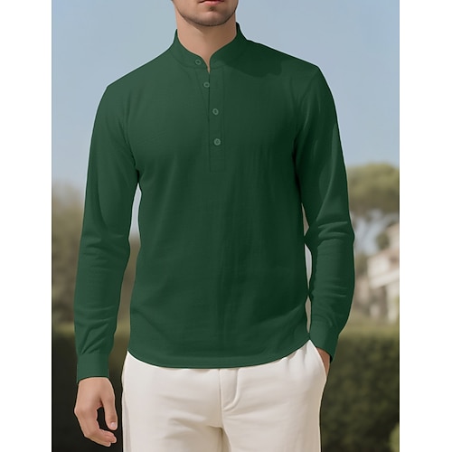 Per uomo Camicia di lino Maglietta Maglia Henley Camicia a Maniche Lunghe Manica Lunga Henley Estate Primavera Semplice Moda Streetwear Tempo libero Bottoni Quotidiano Vacanza Sport Outdoor Nero