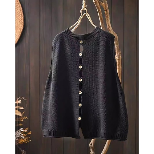 Per donna Felpa Gilet Streetwear Casual Tinta unica Girocollo Bottoni Lavorato a maglia Senza Maniche Top Regolari Maglia Quotidiano Ferie Uscire Nero Rosso Primavera Autunno