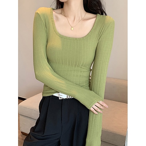 Per donna Blusa Tinta unica Elegante Essenziale Casual Manica Lunga Scollo Tondo Top Regolari Quotidiano Nero Bianco Verde militare Verde Grigio scuro Primavera Autunno Inverno