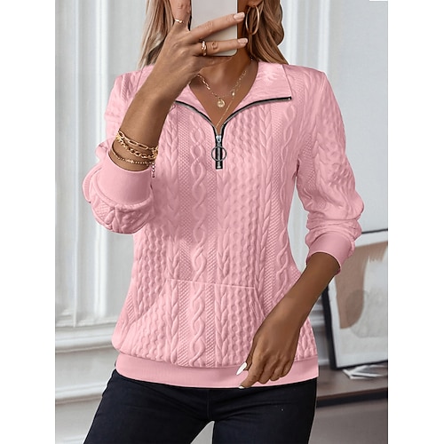 Per donna Blusa Tinta unica Elegante Casual Spiaggia Manica Lunga Colletto a Camicia Top Regolari Quotidiano Cerniera Bianco Rosa Blu Viola Arancione Primavera Autunno Inverno