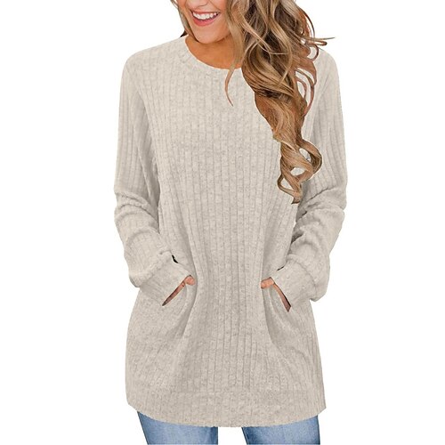 Per donna Blusa Tinta unica Elegante Casual Manica Lunga Girocollo Top lunghi Quotidiano Tasca Nero Blu Viola Marrone Verde Primavera Autunno Inverno