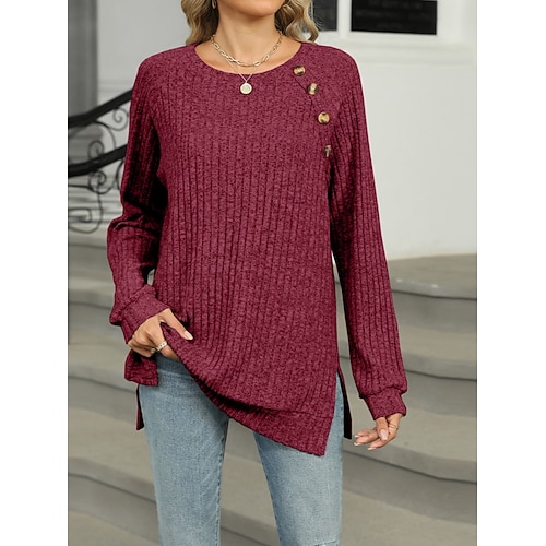 Per donna Blusa Tinta unica Elegante Casual Manica Lunga Girocollo Top Regolari Quotidiano Bottoni Nero Verde militare Rosso Blu Primavera Autunno Inverno
