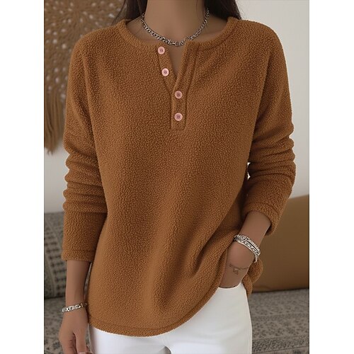 Per donna Blusa Tinta unica Elegante Casual Manica Lunga Girocollo Top Regolari Quotidiano Bottoni Nero Verde chiaro Vino Marrone Primavera Autunno Inverno