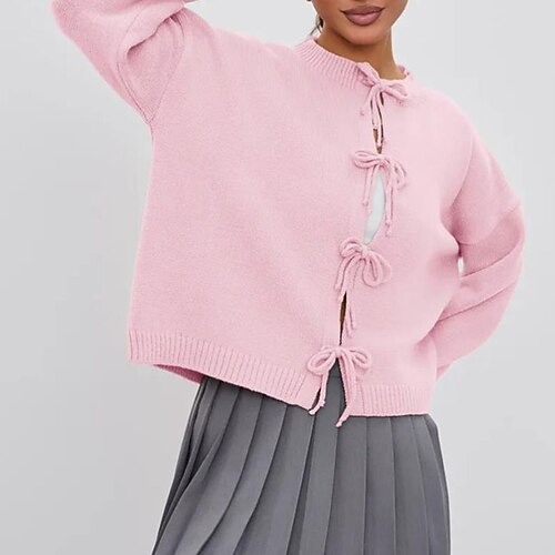 Per donna Felpa Cardigan Elegante Moda Carino Tinta unica Girocollo Lavorato a maglia Stampato Manica Lunga Top Regolari Maglia All'aperto Quotidiano Ferie Nero Bianco Autunno Inverno