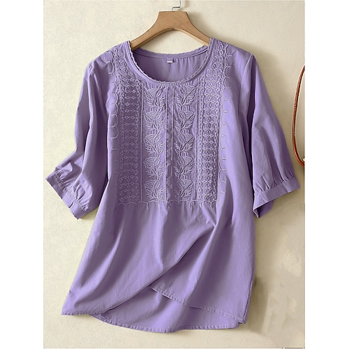 Per donna Camicia Tinta unica Floreale Casual Boho Manica 3/4 Manica al gomito Girocollo Top Regolari Quotidiano Uscire Ricamato Blu Verde chiaro Viola Estate