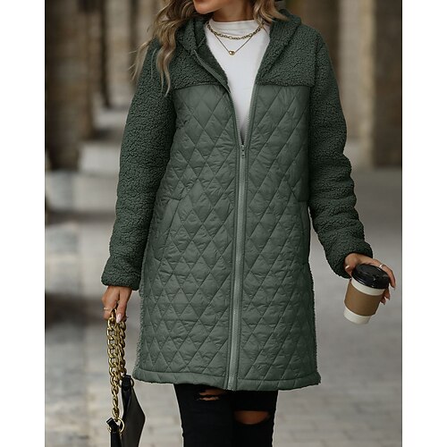 Per donna Cappotto Invernale Cappotto Caldo Confortevole Cerniera Tasca Casual Tinta unica Vacanza Streetwear Casuale Abbigliamento quotidiano Lungo Con Cappuccio Vestibilità comoda Manica Lunga