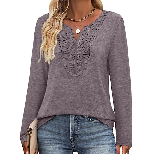 Per donna Blusa Tinta unica Elegante Casual Manica Lunga Scollo a V Top Regolari Quotidiano Patchwork Ricamato Nero Bianco Rosa Viola Verde Primavera Autunno Inverno