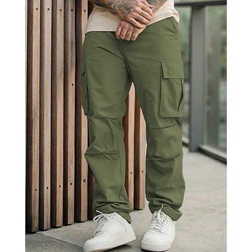 Per uomo Pantaloni Cargo Pantaloni Pantaloni Larghi Multi-tasche Tasca con Patta Tinta unica Antivento Indossabile Casuale Quotidiano All'aperto Streetwear Elegante Nero Verde militare