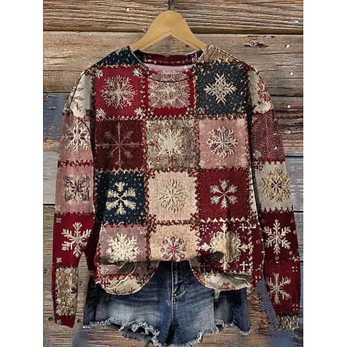 Per donna Felpa Pullover Floreale Grafico Vintage Casual Manica Lunga Girocollo Top Regolari Casa Lavoro Streetwear Stampato Vino Marrone Beige Primavera Autunno Inverno