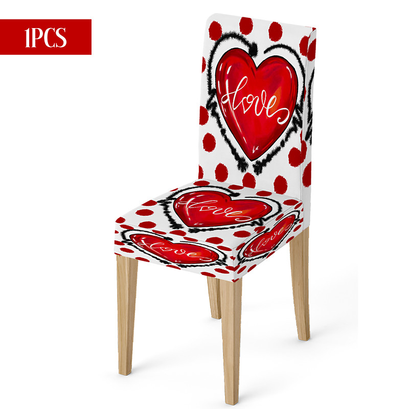 Valentine's Day Stretch Dining Chair Cover Black White Buffalo Check Heart Car Bowknot Chair Back Slipcover Washable Winter Home Restaurant Living Room Kitchen Decor 1/4/6 Pcs