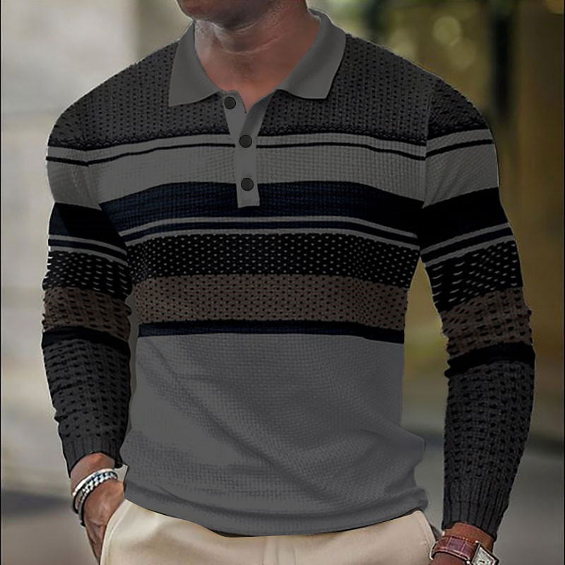 Men's Striped Golf Shirt Long Sleeve Polo Shirts Collared Shirts Casual Vacation Wear Formal Wear Festival Wear Buttons 3D Print Fall Winter White Purple Brown