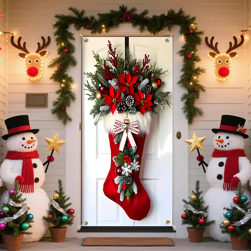 Christmas Posters Door Cover Outdoor Banners Snowman Stockings Cute 3D Party Dorm Teens Room College Dorm Guys Man Cave Frat Bedroom Shooting Backgrounds Home Decor