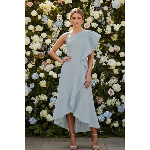 Linea ad A Asimmetrico Lunghezza alla caviglia Vestito da Festa Abito da Cocktail Abiti per invitati a matrimoni Elegante Senza Maniche Monospalla Festa in giardino Ospite di nozze Chiffon Crepe