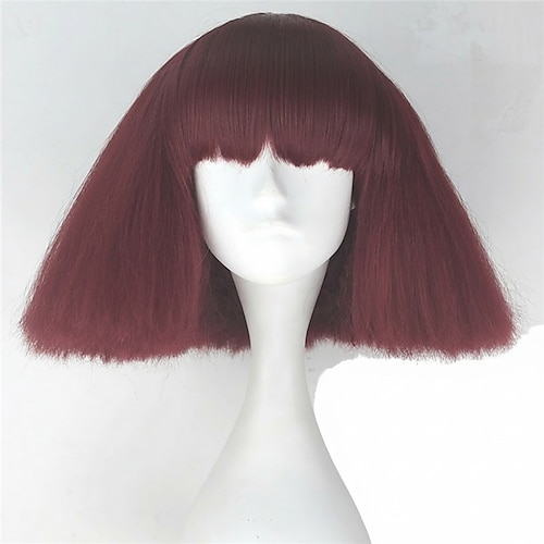parrucca sintetica lady gaga parrucca bob dritta corta castano scuro grigio argento biondo scuro rosa verde capelli sintetici 12 pollici da donna comode e soffici parrucche di carnevale rosso rosa