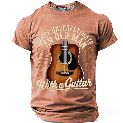 Non sottovalutare mai un vecchio con una chitarra, chitarra acustica, note musicali, t-shirt vintage retrò, grafica, vestibilità regolare, regalo per la festa del papà, abbigliamento firmato, taglie