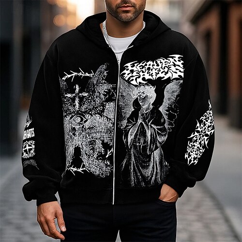 Per uomo Grafico Angelo Felpa con Cappuccio Moda Quotidiano Casual Manica Lunga Con Cappuccio Vacanza Feste Abbigliamento casual alla moda Festival Nero Bianco Rosso Con zip Tasca Stampa Primavera