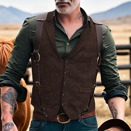 Per uomo Gilet Vacanza Feste Affari Moda Casual Primavera Autunno Tasca Bottoni Poliestere Confortevole Semplice Monopetto Un Bottone Bavero Vestibilità regolare Caffè Marrone Nero Verde Grigio
