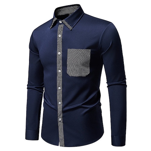 Per uomo Camicia Camicia elegante Camicia con Bottoni Blocco di colori Matrimonio Feste Nero Bianco Blu marino Manica Lunga Bavero Primavera Autunno Abbigliamento Patchwork
