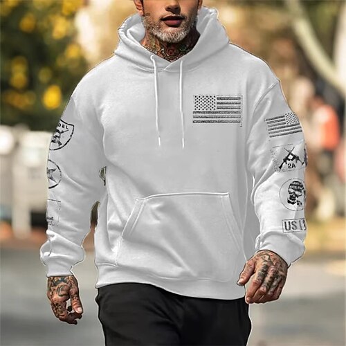 Per uomo Stampe Grafiche Bandiera Nazionale Felpa con Cappuccio Moda Quotidiano Casual Manica Lunga Con Cappuccio Vacanza Feste Abbigliamento casual alla moda Festival Nero Bianco Blu reale Marrone