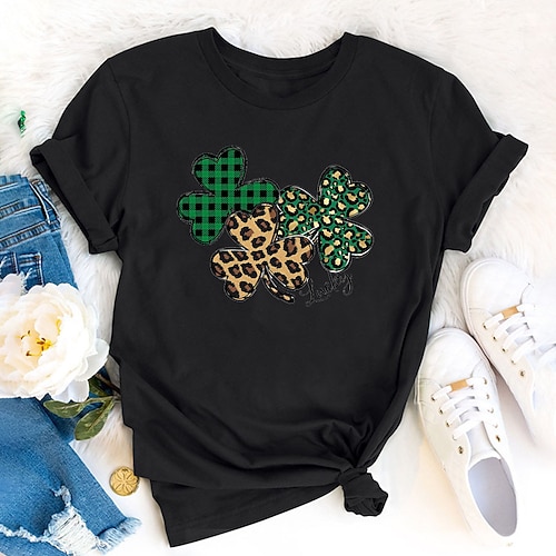 Giorno di San Patrizio Festa di San Patrizio Per donna Maglietta Trifoglio Moda Manica Corta Girocollo Top Regolari Casuale Giorno di San Patrizio Stampato Nero Bianco Rosa Arancione Verde Primavera