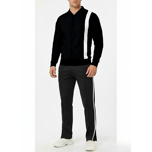Per uomo Maglia Tuta da Ginnastica Set di abiti Collo alla coreana All'aperto Quotidiano Sportivo Coulisse Con zip Tasca Blocco di colori Nero Bianco Blu marino Abbigliamento sportivo Moda Streetwear
