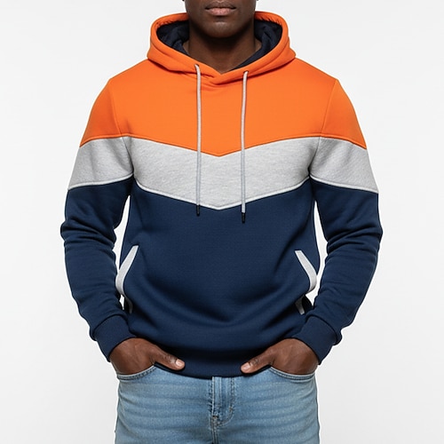 Per uomo Felpa con cappuccio Blu denim Nero Bianco Giallo Vino Con Cappuccio Blocco di colori Blocco di colore Tasca Frontale Casuale Quotidiano Sport Outdoor Streetwear Cool Abbigliamento Sportivo