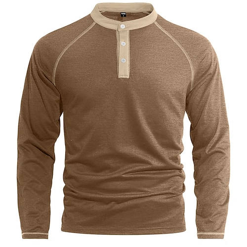 Per uomo Maglietta Maglia Henley Manica Lunga Girocollo Estate Primavera Tinta unica Streetwear Elegante Casual Patchwork Blocco di colore Bottoni Casuale Quotidiano All'aperto Cammello Nero Blu