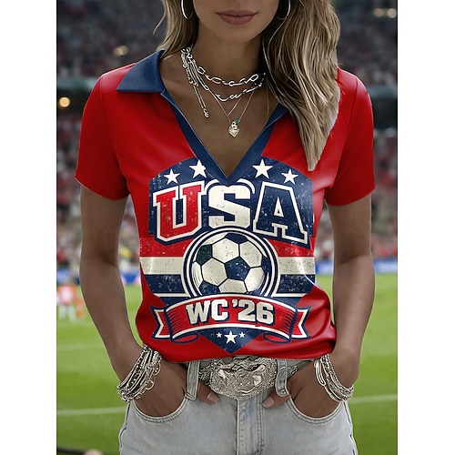 Per donna Maglietta Blocco di colore Stampato Grafico Elegante Classico Casual Manica Corta Colletto Polo Top Regolari Casuale Quotidiano Sportivo Nero Bianco Rosso Blu inchiostro Estate Primavera